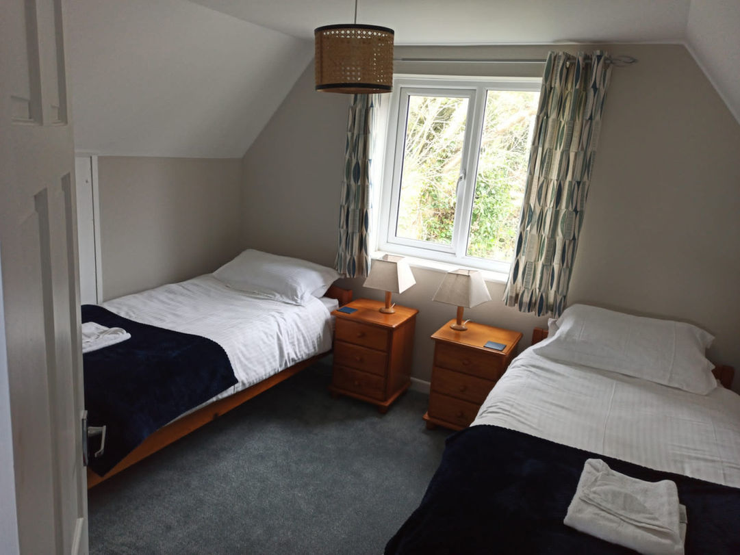 One of the double bedrooms is situated on the ground floor with an en-suite shower room. There is a further double bedroom, a twin bedded room and a shower room on the first floor accessed via a spiral staircase.